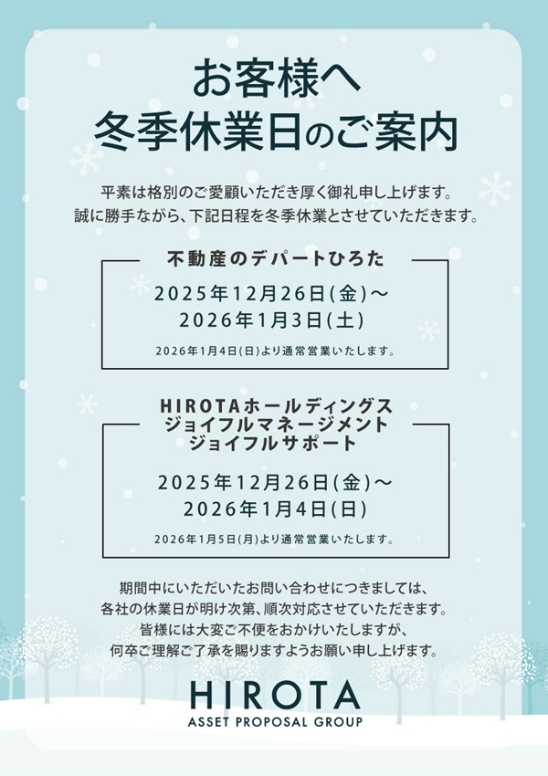 誠に勝手ながら、下記日程を冬季休業とさせていただきます。